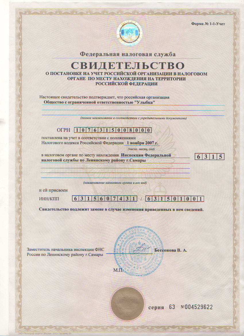 Полное наименование: Общество с ограниченной ответственностью «Улыбка»